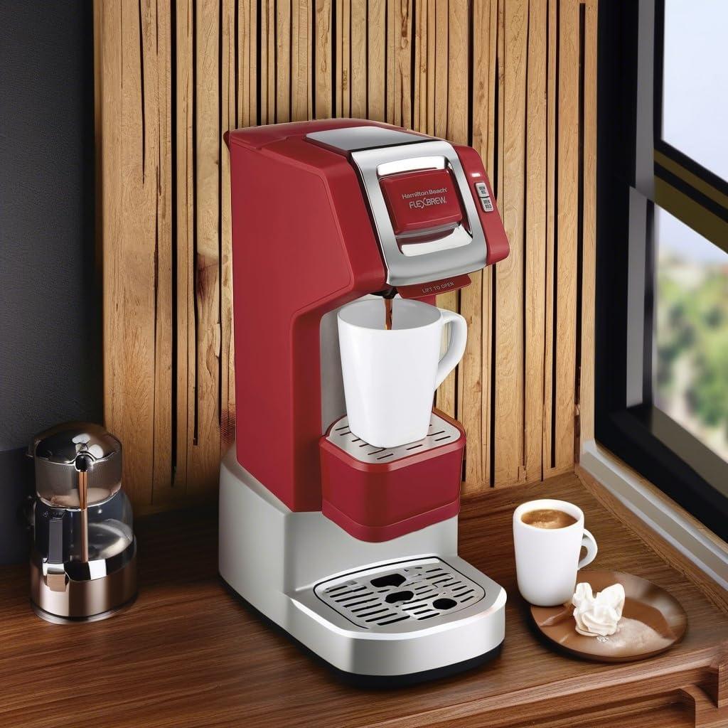 Hamilton Beach 49945 FlexBrew Single-Serve Coffee Maker Compatible with Pod Packs and Grounds, 1 Cup, Red(Black Silver)