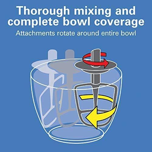 COMPLETE BOWL COVERAGE — The planetary mixing action rotates the beaters around the 3.5 quart stainless steel bowl for even and complete hands-free mixing. The stand mixer has the same rotating mixing action as other leading brand stand mixers.