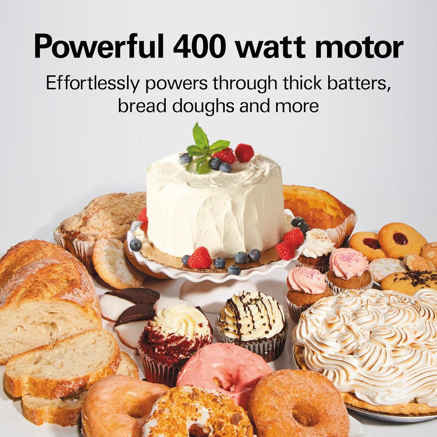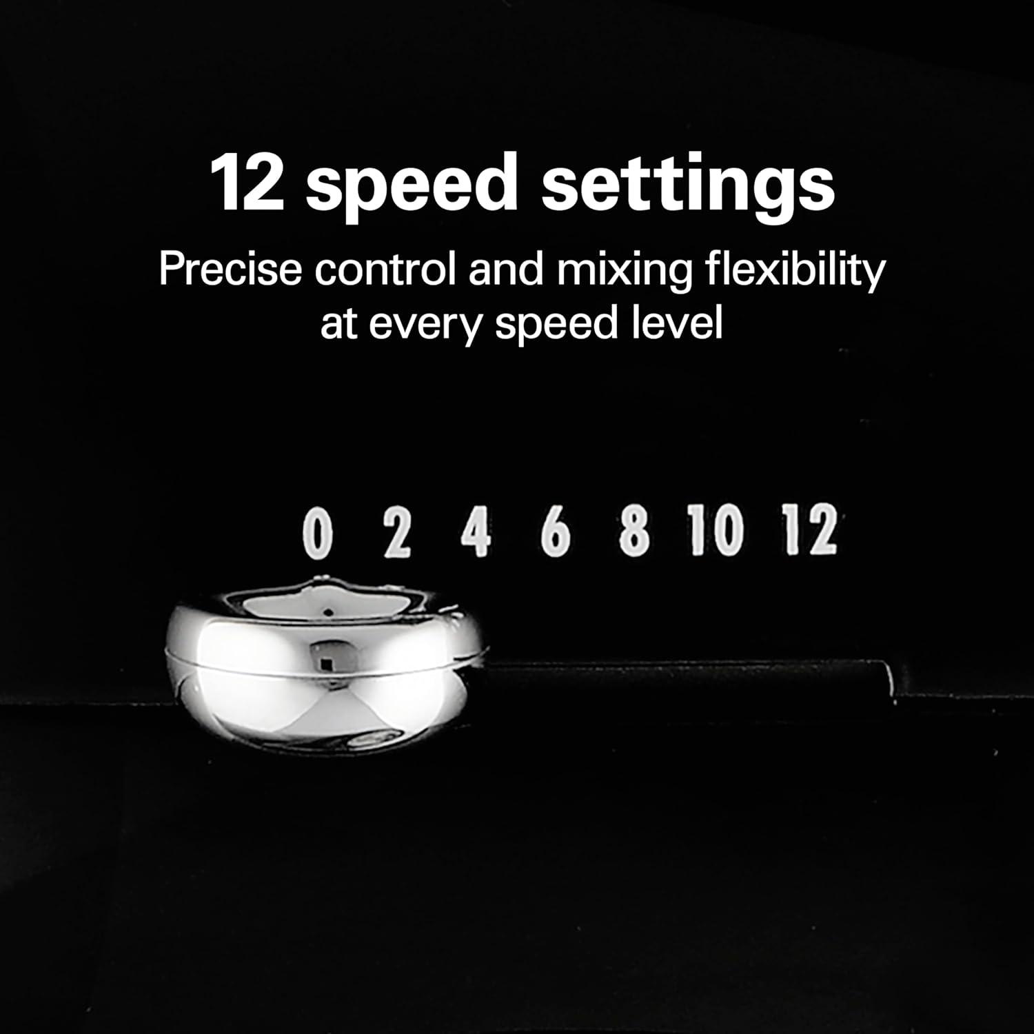 Die-cast metal stand mixer with powerful 400-watt motor and 12 speed settings