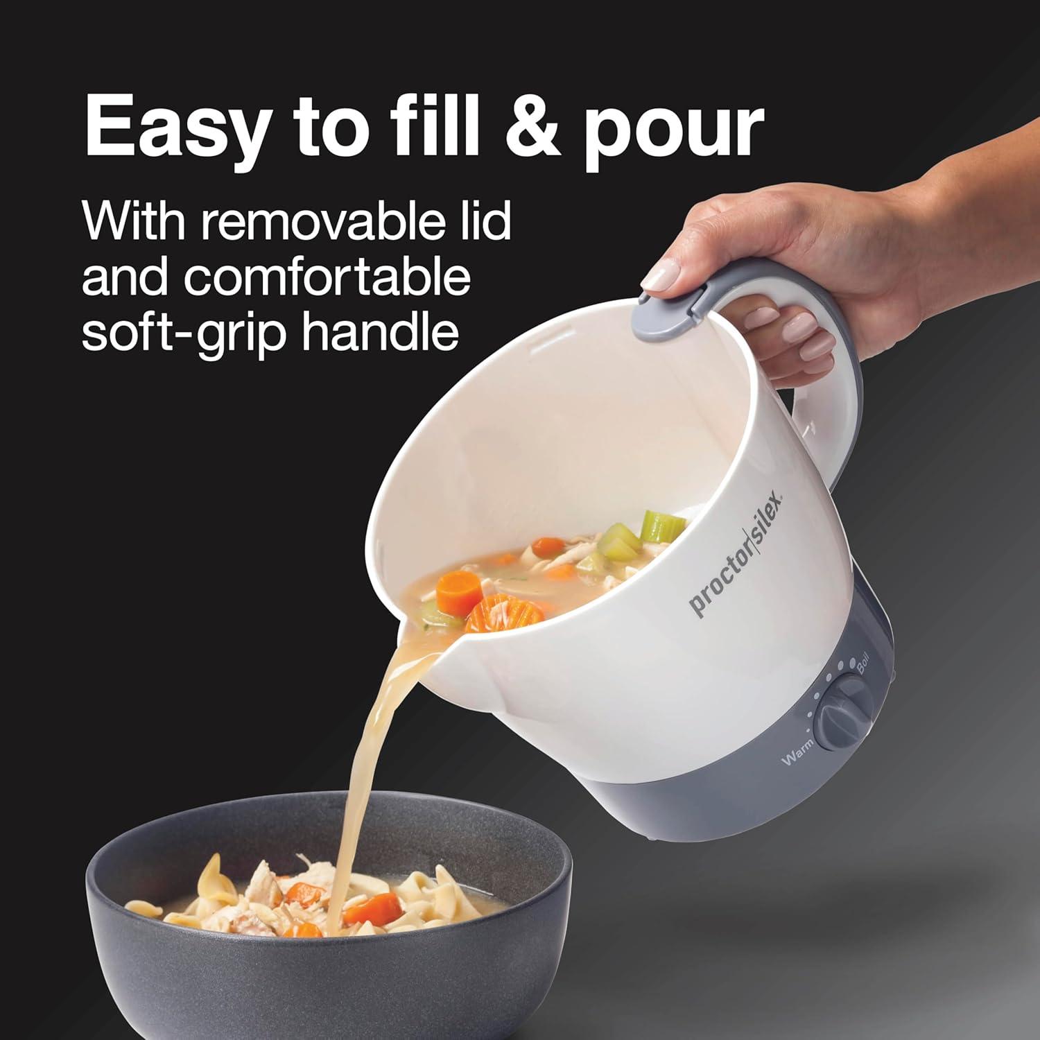 EASY TO CLEAN: The inside of the Proctor Silex hot pot has a nonstick coating that's PFAS free and easy to clean. Just lift the removable lid and rinse or wipe clean.