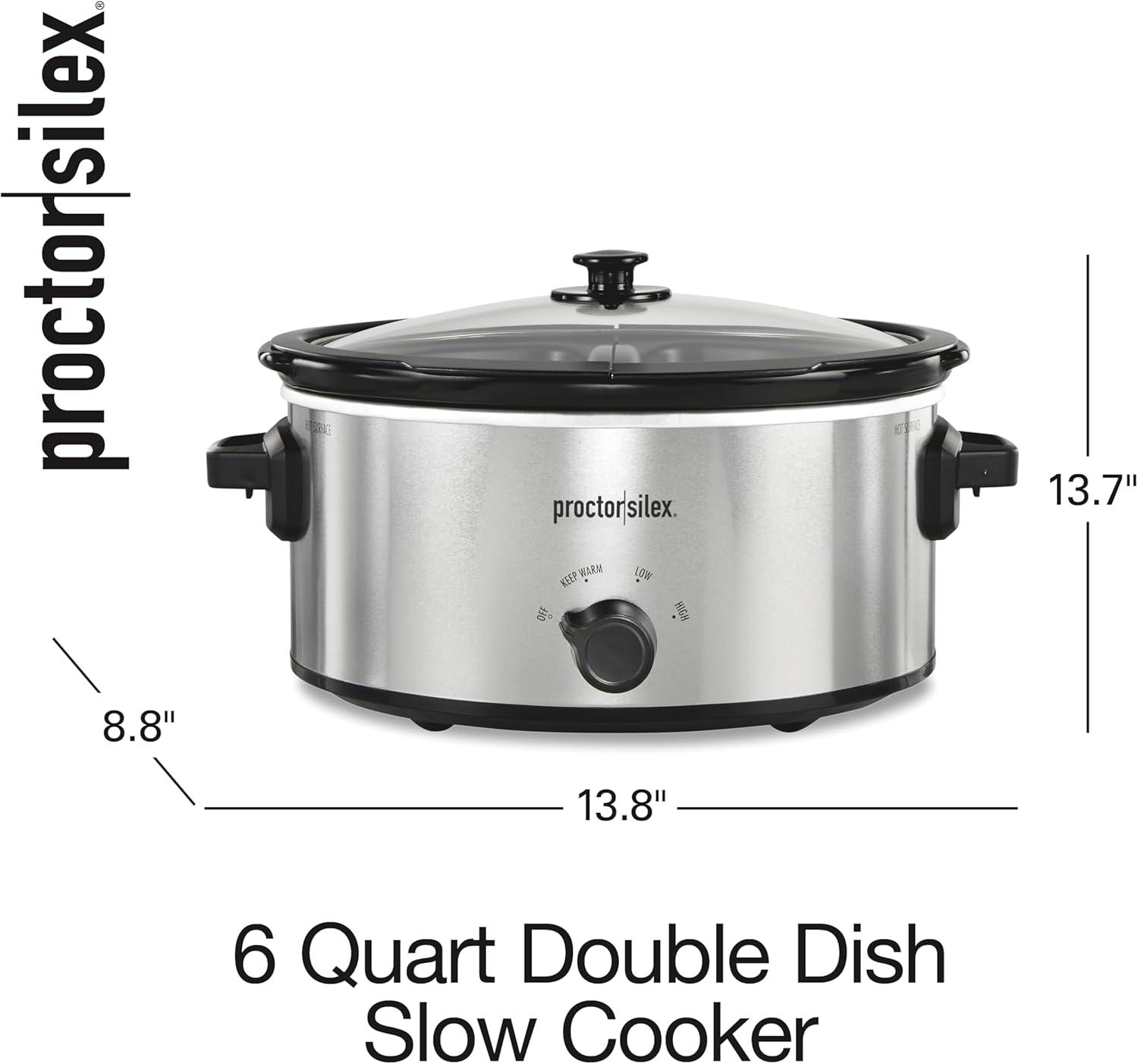 Be the first to review “Proctor Silex Double Dish Slow Cooker with 6qt Crock and Dual 2.5qt Nonstick Insert to Cook Two Meals at Once, Dishwasher Safe Pot & Lid, Silver (33563)”