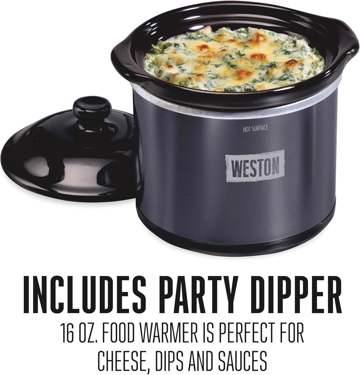 INCLUDES PARTY DIPPER FOOD WARMER WITH LID: This party-size 16 oz. food warmer is perfect for cheese, dips and sauces. It's easy to clean with a dishwasher safe ceramic crock and lid.